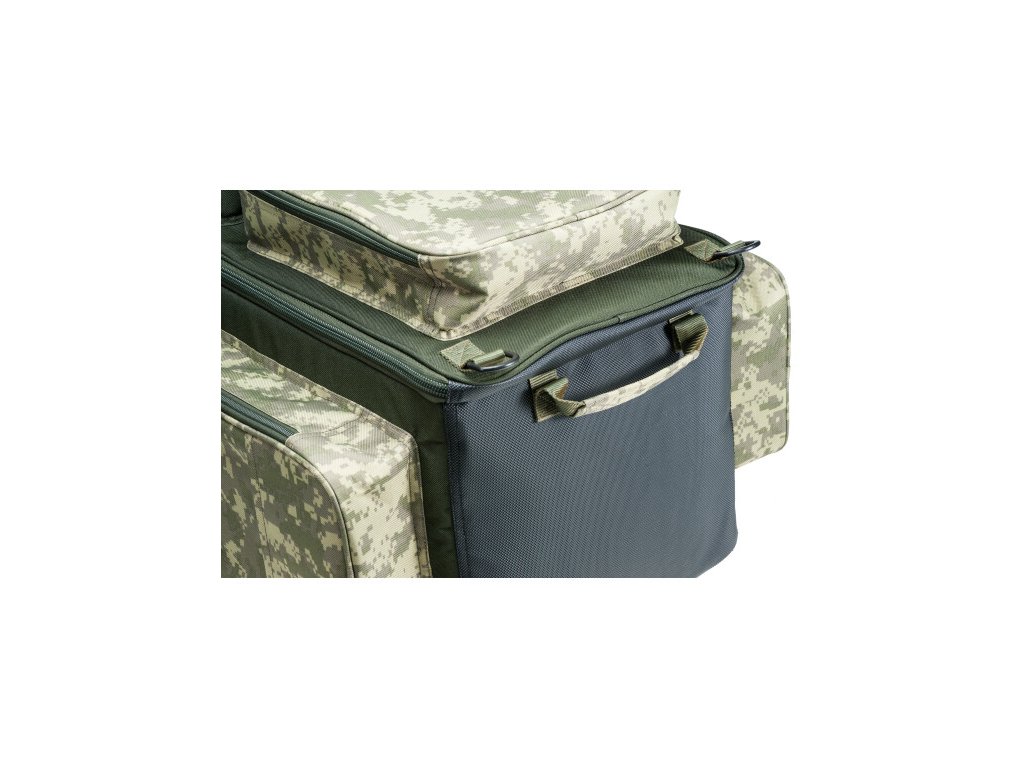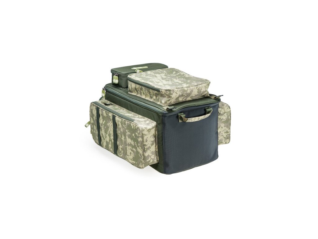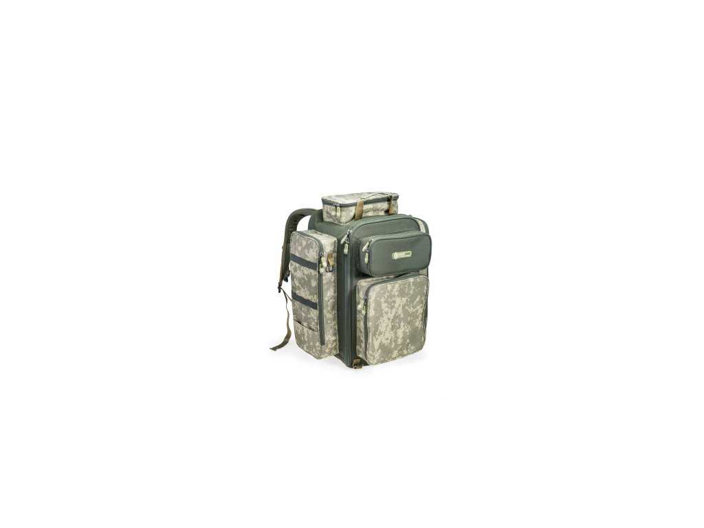 Veľký batoh na pohodlnú prepravu veľkého množstva rybárskeho vybavenia. Je uspôsobený na ľahké zasunutie pod lehátko. Hlavná komora je ľahko prístupná vďaka kompletne otvárateľnej prednej stene. Päť veľmi priestranných vonkajších vreciek umožňuje prehľadné uloženie systémových boxov a celého radu drobného príslušenstva. Polstrované popruhy aj anatomicky tvarovaná a odvetraná chrbtová časť umožňujú pohodlné nosenie naplneného batohu aj na dlhšie vzdialenosti. Odolný, nepremokavý a ľahko umývateľný materiál B-POL600D v CamoCODE vrátane originálnych ťahadiel zipsov podčiarkujú prémiovú kvalitu tohto batohu.