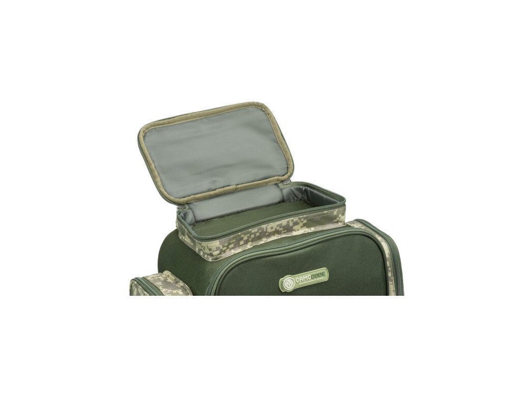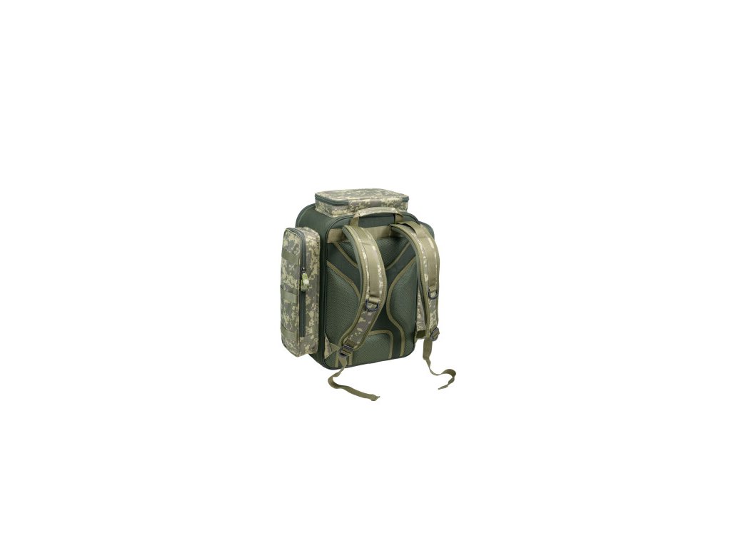 Viacúčelový batoh strednej veľkosti na prepravu rybárskeho príslušenstva s možnosťou rýchleho a jednoduchého prístupu k prepravovanému obsahu. To je zaistené otváracou prednou stenou a veľkými vreckami po obvode. Svojou veľkosťou je predurčený pre kratšie vychádzky alebo aktívny rybolov, pri ktorom sa postupne premiestňujete na nové lovné miesta. Polstrované popruhy a odvetraná chrbtová časť umožňujú veľmi pohodlné nosenie. Odolný, nepremokavý a ľahko umývateľný materiál B POL600D v CamoCODE dizajne vrátane originálnych ťahadiel zipsov podčiarkujú prémiovú kvalitu tohto batohu.