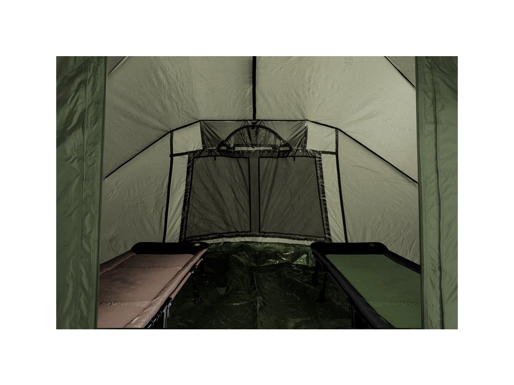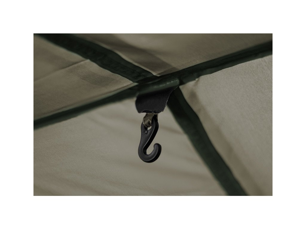 Nová vylepšená generácia kráľa medzi veľkými bivakmi. YURTA NEO je charakteristický svojím veľkorysým priestorom, poskytujúcim dokonalé útočisko počas dlhých pobytov pri vode. Do tohto bivaku bez problémov umiestnite 3 lehátka, pričom stále v ňom zostane dostatok priestoru na pohodlné fungovanie pri vode. Základ bivaku tvorí mohutná trojrebrová konštrukcia s vrchnými vystužujúcimi rozperami. Okrem toho však disponuje dvoma rozperami po bokoch, vďaka ktorým nadobúda bivak ešte lepšiu stabilitu. V kombinácií s kvalitnou látkou a kompletne podlepenými švami zvládne tento bivak akékoľvek poveternostné podmienky. V prednej časti sa nachádza veľký šilt s dĺžkou nad vstupom až 70cm! Vďaka šiltu vám nenaprší na prípadnú obuv pred bivakom a počas silnej búrky zamedzí kvapkám dažďa dostať sa na moskytiéru dverí. Šilt taktiež disponuje dvoma úchytmi na prúty. Vo vnútri sú na strope bivaku navyše umiestnené 2 háčiky, na ktoré je možné zavesiť napríklad lampu.