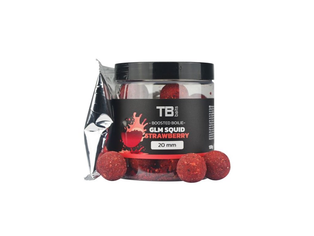 Toto boilie bolo prvé, ktoré sme vytvorili pod vlastnou značkou TB Baits. S boiliom obdobných príchutí sme mali vždy veľmi dobré skúsenosti a Tomáš Blažek naňho ulovil v roku 2013 aj svoj rekord, ktorým bola slávna ryba s názvom Moby Dick o váhe 35,8 kg na legendárnom jazere Lac du Der. O rok neskôr sa Tomášovi už na naše boilies GLM Squid Strawberry podarilo prekabátiť ďalšiu gigantickú rybu s hmotnosťou 33,6 kg. Toto boilie je založené na kalmáreovej múčke s veľkým podielom GLM extraktu a chuťovým stimulátorom s príchuťou jahôd, vaječný vtáčím zobom s hmyzom a drvených slávok. Ďalej obsahuje esenciu jahoda, esenciálny olej čierne korenie, tekutú potravu Power Amino, Power Liver, soľ a NHDC.