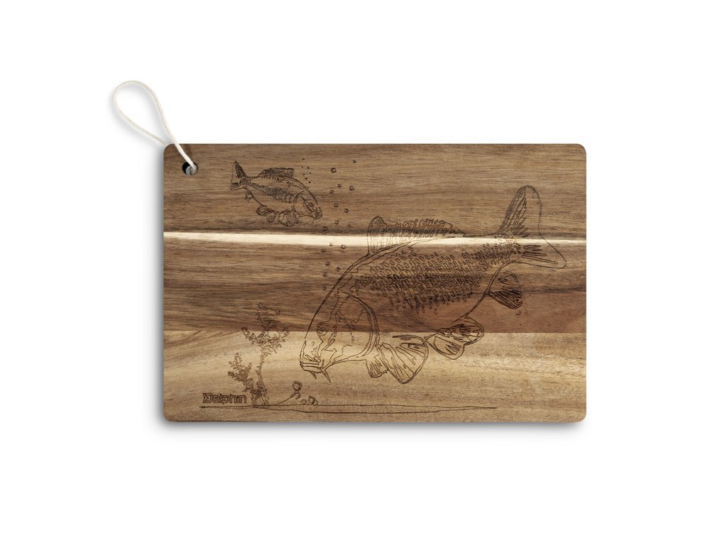 Dekoračná kuchynská doska Delphin CarpBOARD je vyrobená z akáciového dreva, ktoré je známe svojou vysokou odolnosťou, tvrdosťou a krásnou prírodnou kresbou. Vďaka hustej štruktúre a prirodzeným antibakteriálnym vlastnostiam si zachováva vysokú hygienickú úroveň, čo z nej robí praktický doplnok do každej kuchyne, ale aj na vaše rybárske výpravy.