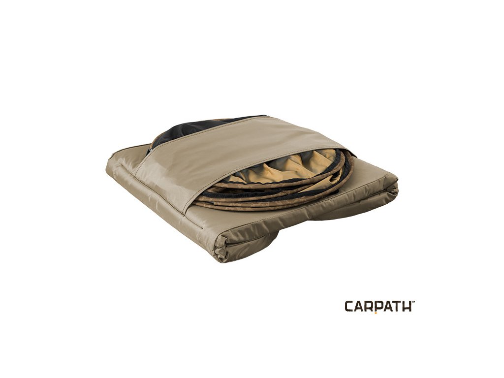Mimoriadne praktická podložka, ktorá slúži k uloženiu úlovku na čas nevyhnutný pre uvoľnenie háčika, fotenie, či váženie. Jej hlavnou prednosťou je možnosť zloženia do minimálnej veľkosti, ktorú oceníte hlavne pri transporte. Celá podložka sa skladá z 2 hlavných častí a to z korpusu a samotnej podložky. Podložka je hrubá 45mm, čo dokonale chráni úlovok pred poškodením. Korpus je osadený bočnými stenami, ktoré bránia úlovku, aby sa dostal mimo podložky. Tomu napomáha aj vrchná prekrývacia plachta na suchý zips. Korpus je dodatočne osadený rukoväťami, ktoré sa dajú použiť pre zavesenie na váhu. Ako príslušenstvo sú dodávané 2 zaisťovacie kolíky, pomocou ktorých je možné upevniť podložku k zemi. Súčasťou podložky je puzdro, do ktorého uložíte poskladaný korpus spolu s podložkou. Zabránite tak mokrej podložke prísť do styku s ostatnými vecami v aute, prípadne šíreniu zápachu.