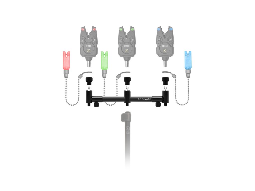 Hrazda na prúty s magnetickými rýchlospojkami a univerzálnym závitom, kompatibilná s väčšinou rázsošiek a búrkových tyčí dostupných na trhu. Výhodou rýchlospojky je, že si viete signalizátory a zadné držiaky ponechať zaskrutkované v závite a v prípade potreby jednoducho vytiahnuť z hrazdy, alebo zasunúť naspať pri začatí lovu. Jednotlivé ramená sú výsuvné, a teda je možné si šírku hrazdy prispôsobiť podľa svojich potrieb, napr. podľa veľkosti navijakov. V obľube je tiež roztiahnutie prednej hrazdy a vytvorenie vejárového rozloženia prútov, pri ktorom špičky smerujú mierne od seba.
