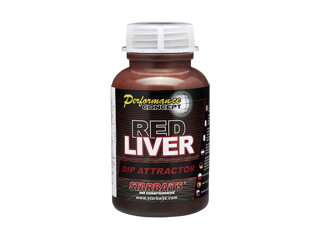 Dip zvýrazňuje pachovú a chuťovú stopu nástrahy (boilie, partikel, kŕmenie). Nerozpúšťa PVA! Príchuť Red Liver.