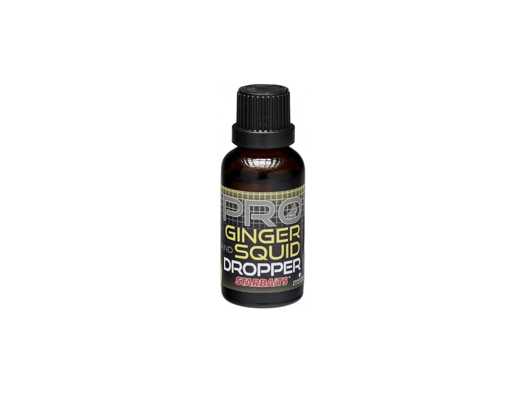 Dropper je koncentrovaná kvapalina plná chuti a arómy. Vzniká destiláciou prírodných extraktov. Vďaka svojej nižšej hustote ako voda sa šíri veľmi rýchlo. Dropper sa používa na ochutenie a aromatizáciu neutrálnych Pop Up návnad, alebo nástrah na Zig Rig. Vďaka vysokej koncentrácii stačí len niekoľko kvapiek na vytvorenie vlastnej jedinečnej návnady. Príchuť Pro Ginger Squid/zázvor kalmár/.