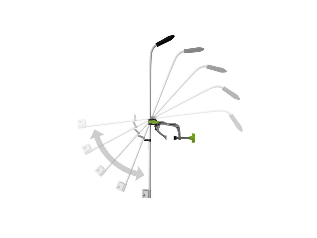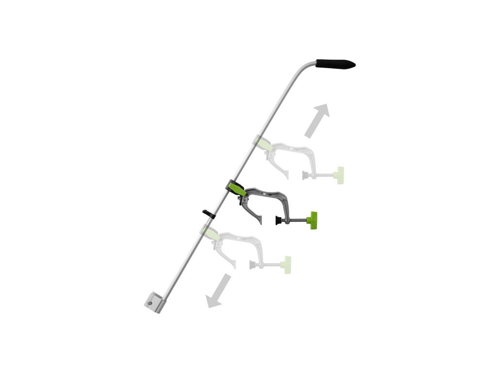Sklon samotného držiaka je možné poľahky nastaviť pomocou praktického výklopného mechanizmu. Viete si tak nie len nastaviť sondu do roviny pod hladinou, ale v prípade plytkej vody ju aj poľahky vyklopiť smerom nad vodu, aby nedošlo k jej poškodeniu.