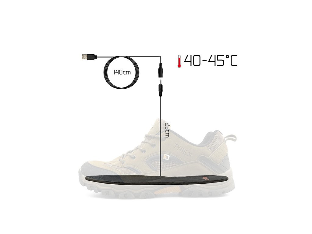 Univerzálna veľkosť 40-46 umožní použite pri širokej škále veľkosti obuvi. Vložky po pripojení pomocou USB koncovky do power banky, alebo iného zdroju elektrickej energie (neodporúčame pripojenie vložiek priamo do elektrickej siete), dokážu vyhriať vnútro vašej topánky do teploty 40-45°C. To oceníte najmä počas zimných dní či už pri chôdzi alebo pri dlhšom zotrvaní na jednom mieste počas lovu. K maximálnemu komfortu prispieva aj príjemný mäkký materiál, z ktorého sú vyrobené. Po odpojení od zdroja teplota vložiek pomaly klesne.