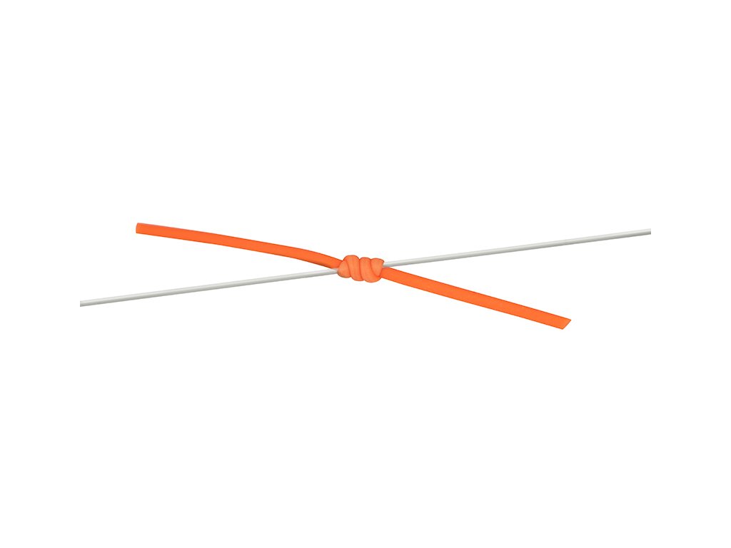Jasne oranžová gumička navrhnutá na viazanie dobre viditeľných značiek na kmeňový vlasec.