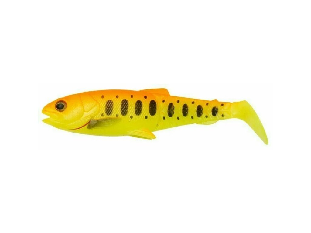 Nástrahy navrhnuté a vyladené samotným legendárnym dizajnérom Mads Grosellom. Ich tvar je inšpirovaný skutočnými malými pstruhmi, s klasicky kanibalsky otvorenou papuľkou, veľkými realistickými mäkkými očami a novým unikátnym dizajnom chvostového mostíka, vďaka ktorému nástraha pláva úžasne živou akciou aj pri veľmi nízkych rýchlostiach. Nástraha pláva rovnako dobre pri sťahovaní aj pri prepade. Jej ručne maľované detaily stanovujú nové štandardy vo výrobe gumových nástrah. Táto nástraha s lopatkovitým chvostom chytí snáď každého dravca v okolí!