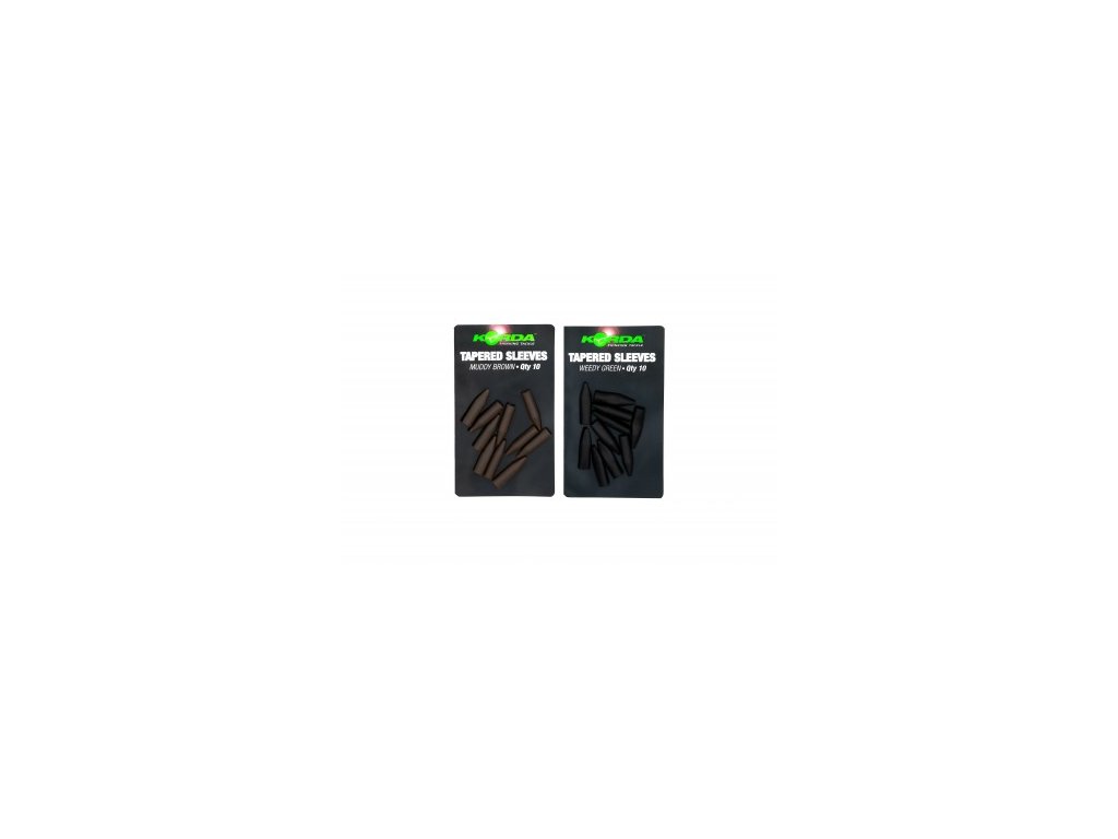 Kužeľové rukávy sú ideálne na zakrytie rôznych svoriek – ako sú spony na háčik, Kwik Link a Stik Klip – ktoré sa používajú na pripevnenie háčika alebo olova. Tieto mäkké gumené návleky majú rýchlo sa zužujúci koniec, ktorý pomáha predchádzať zamotaniu, a to ako vďaka svojmu tvaru, tak aj skutočnosti, že úplne zakryje sponu, ako aj všetky časti na spone, vďaka ktorým je náchylnejšia na zamotanie. . Môžete si vybrať z Weedy Green alebo Muddy Brown a dostanete desať v balení.