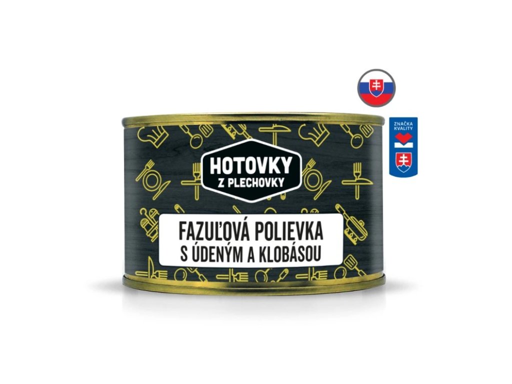 Hotovky z plechovky Fazuľová polievka s údeným a klobásou 400g