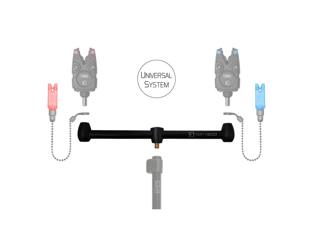 Delphin SIMPLEBUZZ je samostatná univerzálna hrazda na dva prúty. Vďaka štandardnému závitu pasuje k akejkoľvek rázsoške od spoločnosti Delphin, ale taktiež k iným rázoškám na trhu. Dokonalá je napríklad v kombinácii s modelom rázsošiek Simple Stick. Všetky závity sú osadené v masívnom pevnom plaste a tak nehrozí ich vytrhnutie či pretáčanie. Samotná hrazda je vyrobená z hliníku s elegantnou čiernou povrchovou úpravou. Takáto kombinácia materiálov zaručuje dlhú životnosť a odolnosť. Vďaka svojej jednoduchej montáži a skladnosti je ideálnym riešením pre krátke rybačky, no taktiež je využiteľná pri dlhých výpravách na všetkých typoch vôd.