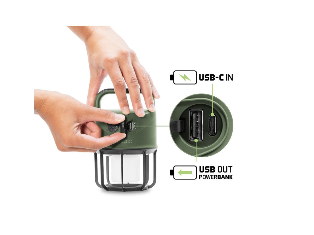 Delphin MULTiX je praktická nabíjateľná kempingová lampa, ktorá kombinuje vysoký svetelný výkon, dlhú výdrž a odolnú konštrukciu. Vďaka USB-A portu, ktorým je lampa vybavená tiež poslúži ako powerbanka.