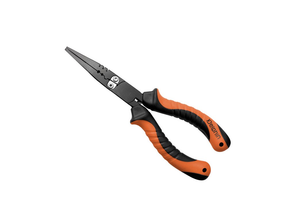Delphin MULTI+CUT sú dlhé kliešte so zabudovaným strihačom spletaných šnúr a vlascov. Sú určené pre vyslobodzovanie háčikov z tlám dravých rýb, v prípadoch, kde nato klasický peán už nestačí. Ich dĺžka je 18cm. Vnútorna plocha klieští poskytuje dostatok gripu pre uchopenie aj veľkých dvojháčikov a trojháčikov. Na čeľustiach sa nachádza aj integrovaná časť určená pre krimpovanie, s celkovou šírkou 9mm. Ramená klieští sú vybavené pružinou, ktorá ich udržuje otvorené a pripravené pre okamžitú manipuláciu. Sú vyrobené z ocele s vysokým podielom uhlíka a ich obe rúčky sú vybavené plastom oranžovej a čiernej farby, ktoré sú dobre viditeľné za každých podmienok a dobre padnú do ruky. Na oboch ramenách rukoväte sa nachádzajú otvory na prevlečenie šnúrky. S našimi kliešťami MULTI+CUT viete odteraz rybu rýchlo a bezpečne zbaviť uviaznutých háčikov.