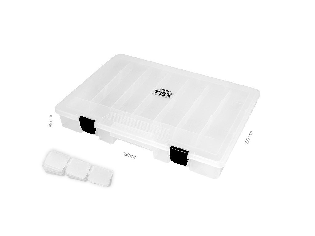 TBX ONE Clip je rada multifunkčných krabičiek určených na uloženie rybárskeho príslušenstva. Vyrobená je z transparentného plastu, takže máte vždy prehľad o uložených veciach vo vnútri krabičky.