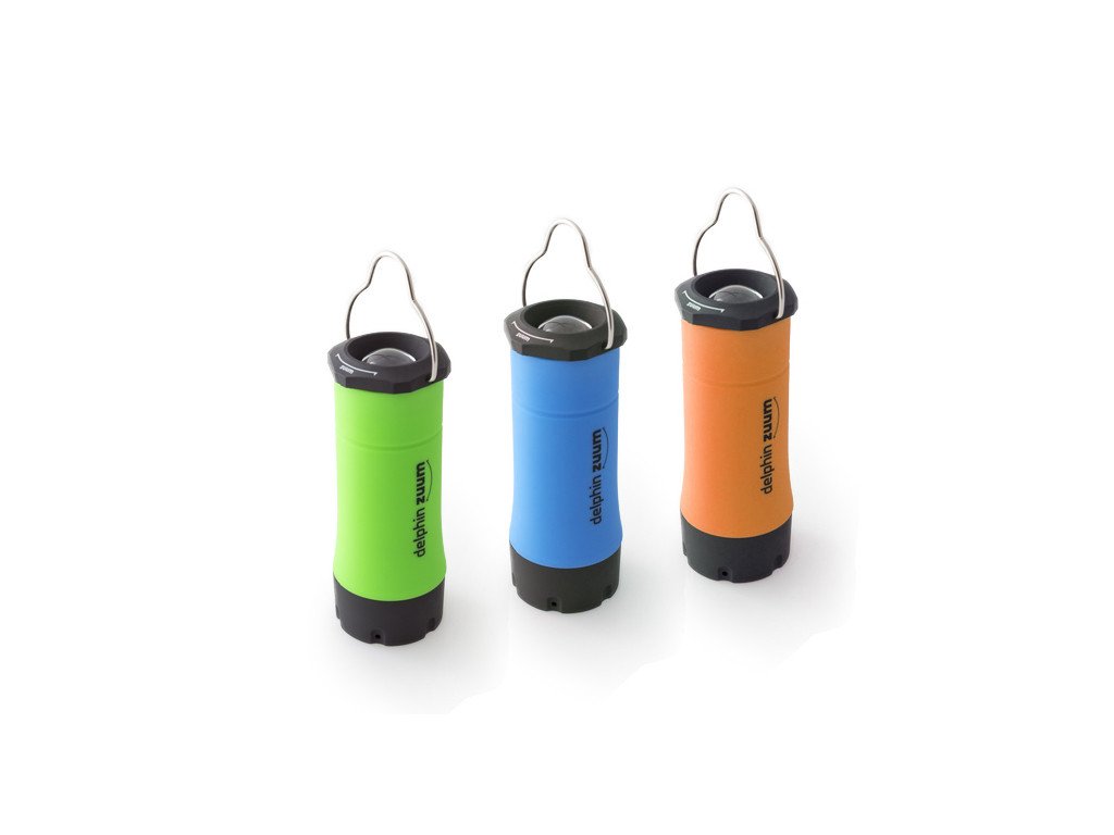 Príručné svietidlo, bez ktorého sa odteraz nezaobíde žiadna vaša rybačka. Delphin ZUUM je vďaka kompaktným rozmerom ľahko prenosný a vďaka svojej multifunkcionalite priam nenahraditeľný spoločník za zhoršených svetelných podmienok. Je ho možné použiť ako klasické svietidlo do ruky, kedy lúč svetla svieti priamym smerom z otočnej hlavice. Po jej otočení je ale možné povytiahnuť stredovú časť a urobiť tak z baterky lampáš. Tento lampáš je samostojaci, no vďaka profilovanému drôtenému háčiku je ho možné bez problémov zavesiť. Tým výpočet vlastností stále nekončí. Samotná LED dióda vo vnútri má tri úrovne svietenia: silné svetlo, tlmené svetlo a blikajúci stroboskop. Možnosti Delphin ZUUM sú teda nekonečné, od klasického ručného svietidla, cez závesný lampáš, svetlo do bivaku, pozičné svetlo... ZUUM je ponúkaný v 3 farebných prevedeniach tela: zelená, oranžová a modrá.