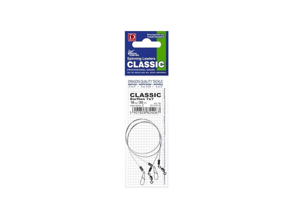 Classic je naša základná rada prívlačových náväzcov, ktorá sa najlepšie hodí do väčšiny rybolovných podmienok. Vyrobené z najkvalitnejších materiálov vrátane Surflon, Surfstrand, titánového opletenia, titánového drôtu a neviditeľného fluorokarbónu, sú vybavené bezpečnými montážami Power Lock a obratlíkmi American Rolling.