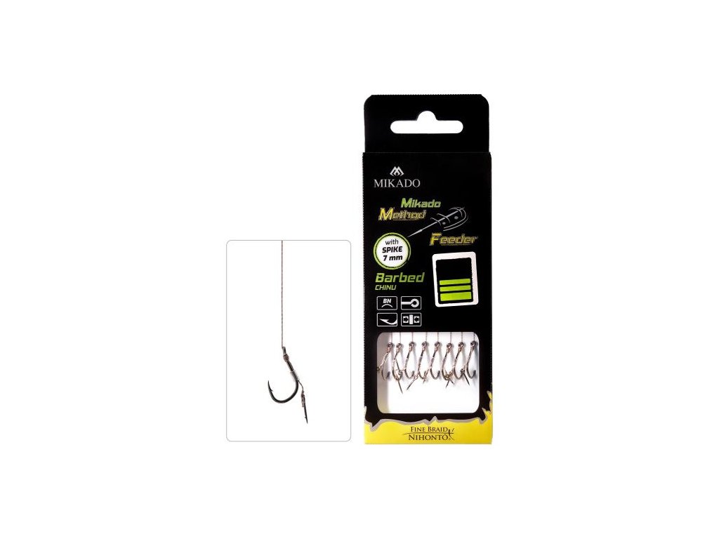 Profesionálne hotové náväzce na Method feeder, viazané na veľmi mäkké a pevné pletené šnúre Nihonto Fine Braid v maskovacej hnedej farbe.