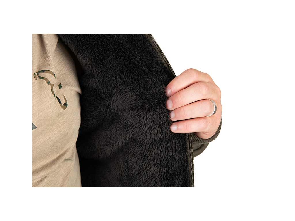 Zelená bunda s kapucňou a s Sherpou podšívkou