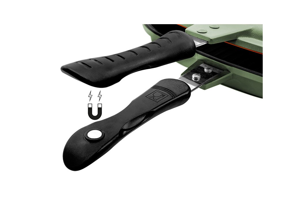 Vďaka magnetu na rukoväti jednotlivé polovice po uzatvorení výborne držia spolu a panvicu tak môžete počas prípravy pokrmu ľubovoľne obracať. O dokonalú tesnosť sa pritom stará obvodové tesnenie odolné vysokým teplotám. Jednoznačne najväčšou výhodu uzavretej panvice je fakt, že teplo sa vo vnútri omnoho rýchlejšie akumuluje a počas varenia neuniká z panvice von. Vďaka tomu je príprava jedla v prírode omnoho rýchlejšia a jednoduchšia.