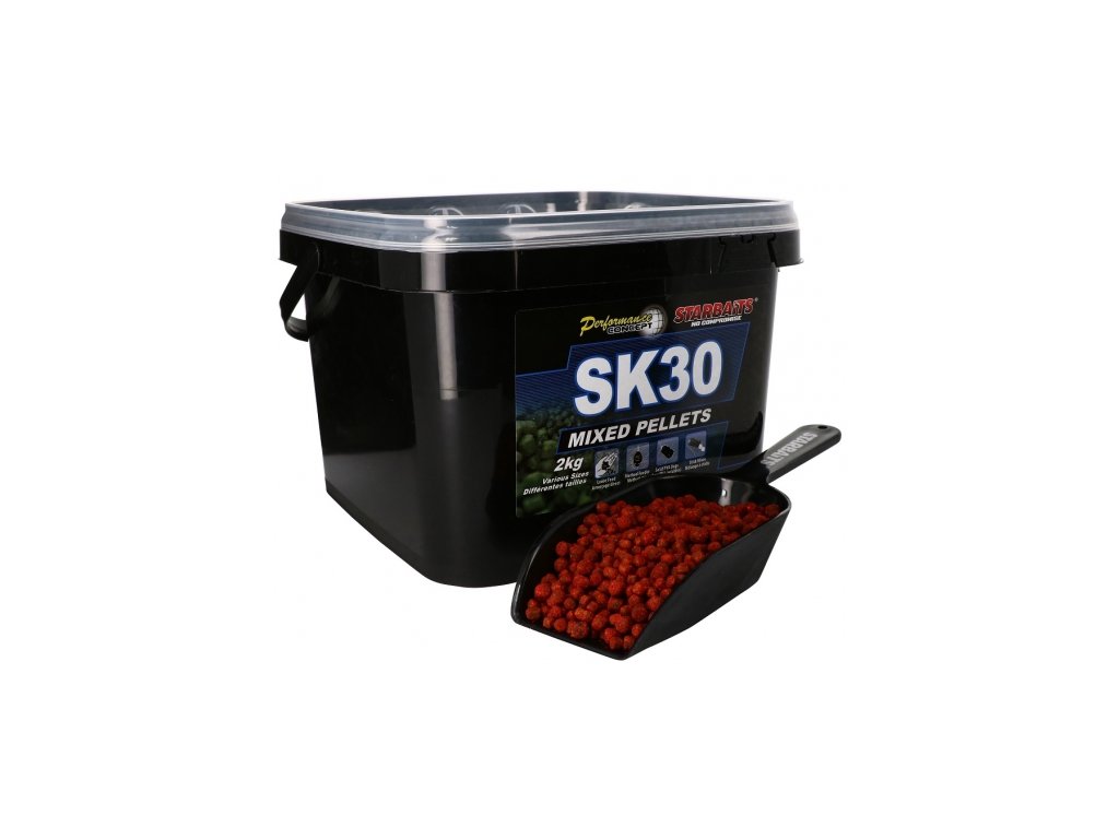 Pelety SK30 sú vytvorené z rovnakých komponentov ako samotné boilies SK30. Sú bohaté na prírodné extrakty a majú vysokú výživnú hodnotu. Výrazne dokážu zvýšiť atraktivitu miesta s vašou nástrahou. Možnosť použitia ako do PVA materiálov, tak aj do vytvorených kŕmnych gulí. Rýchlo lákajú kapry na kŕmne miesto. Ide o mix drobných peletiek. Dodávané v praktickom vedre s vekom.