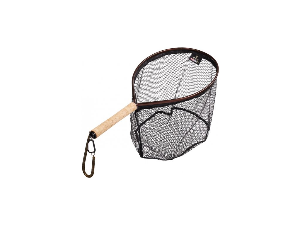Ľahký podberák na lov pstruhov a iných rýb pri brodení. Pogumovaná sieťka pre maximálnu šetrnosť k rybám. Odľahčený rám a rukoväť potiahnutá korkom pre príjemnú manipuláciu. Na konci rukoväte je magnetický úchyt s pružným lankom a karabínou na pripevnenie na vestu alebo tašku. Dĺžka 65 cm, rozmer 30x40 cm, hĺbka 28 cm, sieťovina 8x8 mm, váha 268 g.