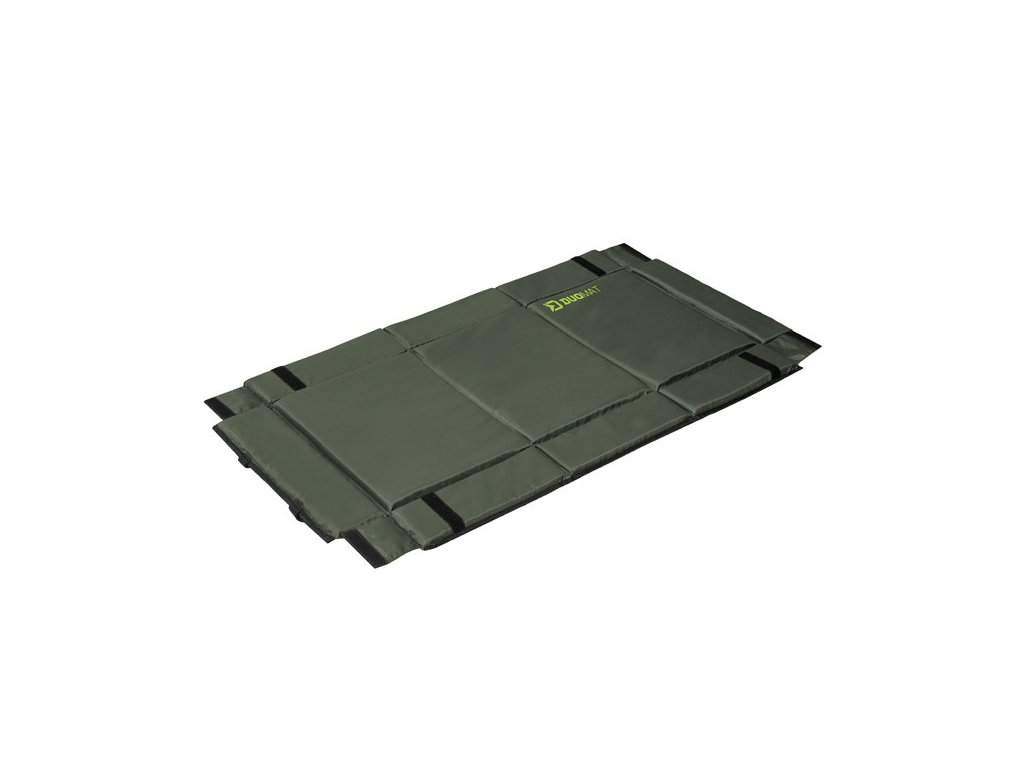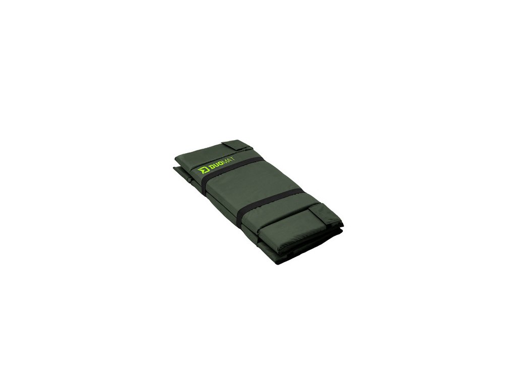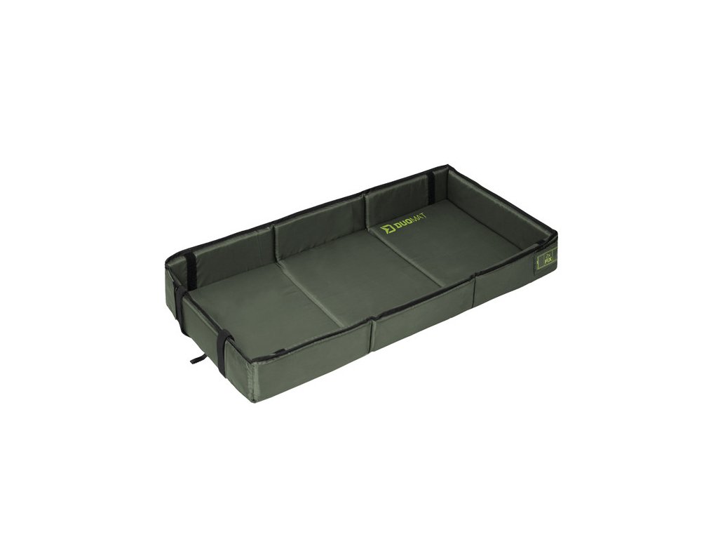 Podložka s okrajmi Delphin DUOMAT je tou pravou voľbou pre rybárov, ktorí nemajú priestor na nosenie veľkej vaničkovej podložky. Podložka má hrubé polstrovanie, aby spoľahlivo ochránila úlovok aj tých najväčších rozmerov. Pena, ktorú sme použili na polstrovanie je o 30% hustejšia a tým je aj pevnejšia než u klasických podložiek. Úlovku tak nehrozí poranenie ani na členitom kamenistom podklade. Vyniká kvalitou spracovania použitých materiálov. Názov DOUMAT znamená, že túto podložku možeme použiť dvojako. Ako štandardnú podložku bez okrajov, alebo si môžeme tieto okraje zodvihnúť a zafixovať ich pomocou suchých zipsov, ktoré sa nachádzajú v každom z rohov. Takto vznikne bezpečnejšia podložka so zvýšenými okrajmi, ktorá dokáže zabrániť tomu, aby sa váš úlovok dostal mimo podložku a poranil sa. Podložka je vybavená dvomi kovovými kolíkmi a našitými očkami, ktoré slúžia na zafixovanie k zemi počas veterného počasia. Pre tieto kolíky bolo vytvorené aj malé vrecko a tým pádom sú vždy poruke. Podložka je vyrobená z rýchloschnúceho materiálu, ktorý sa dá jednoducho očistiť. Práve vďaka jej dômyselnému riešeniu a kvalitnému spracovaniu, získala naša podložka DUOMAT cenu Grand Prix na rybárskom veľtrhu For Fishing 2020 v kategórii: Zaujímavosť veľtrhu.