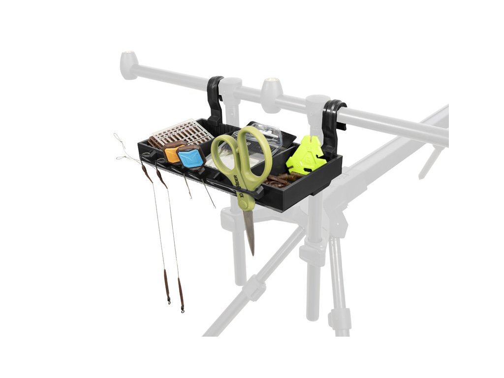 Polička slúži na uloženie rôzneho malého rybárskeho príslušenstva alebo nástrah, čo v praxi znamená, že všetky dôležité drobnosti využívané pravidelne počas lovu budete mať vždy po ruke, resp. pripravené priamo pri Vašich nahodených prútoch.