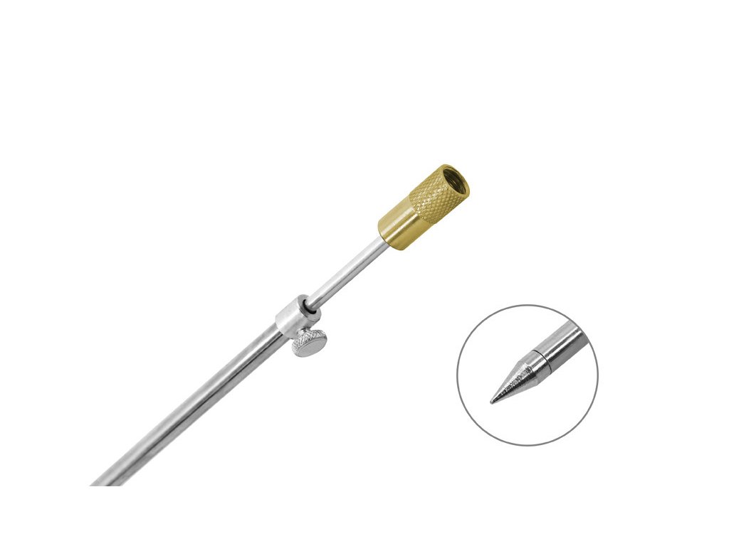 Veľmi pevná, stabilná, teleskopická rázsoška s hrotom. Vyrobená je z ocele, vďaka čomu je výnimočne pevná. Vrchná časť rázsošky je osadená závitom, kompatibilným s elektronickými signalizátormi záberu alebo rôznymi úchytkami. Požadovanú výšku nastavíte jednoducho pomocou závitu s maticou, ktorá slúži na zafixovanie výšky rázsošky.