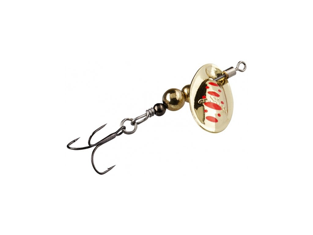 Rotačka určená na lov pstruhov, jalcov alebo ostriežov. Vďaka svojej špeciálnej konštrukcii krídelka je dokonale prispôsobená na lov v potokoch a riekach. Aj v silnom prúde alebo nepravidelných perejách a víroch máte istotu, že sa rotačka bezproblémovo točí. Zakončenie obratlíkom pre minimalizáciu krútenia vlasca a možnosť priameho naviazania na vlasec bez nutnosti používať separátny obratlík. Trojháčik je pripojený pomocou krúžku. Možno ho teda ľahko vymeniť napríklad za jednoháčik. Bodky pre zvýšenie atraktivity. Veľkosť 1, váha 2,4 g.