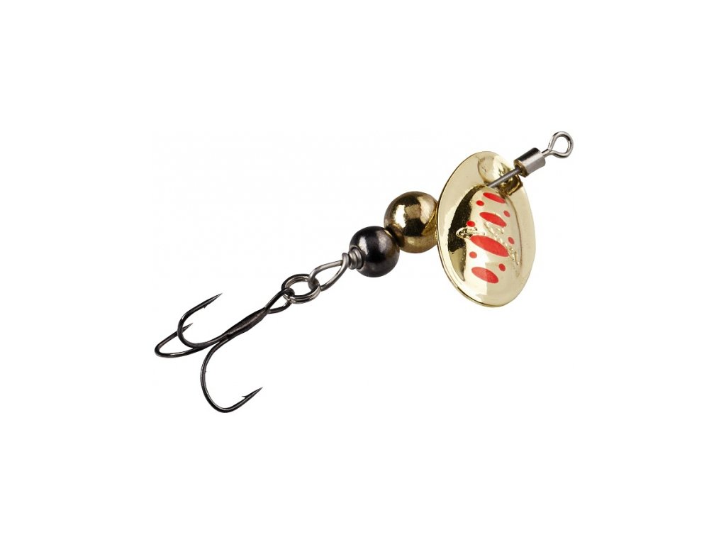 Rotačka určená na lov pstruhov, jalcov alebo ostriežov. Vďaka svojej špeciálnej konštrukcii krídelka je dokonale prispôsobená na lov v potokoch a riekach. Aj v silnom prúde alebo nepravidelných perejách a víroch máte istotu, že sa rotačka bezproblémovo točí. Zakončenie obratlíkom pre minimalizáciu krútenia vlasca a možnosť priameho naviazania na vlasec bez nutnosti používať separátny obratlík. Trojháčik je pripojený pomocou krúžku. Možno ho teda ľahko vymeniť napríklad za jednoháčik. Bodky pre zvýšenie atraktivity. Veľkosť 0, váha 2,2 g.