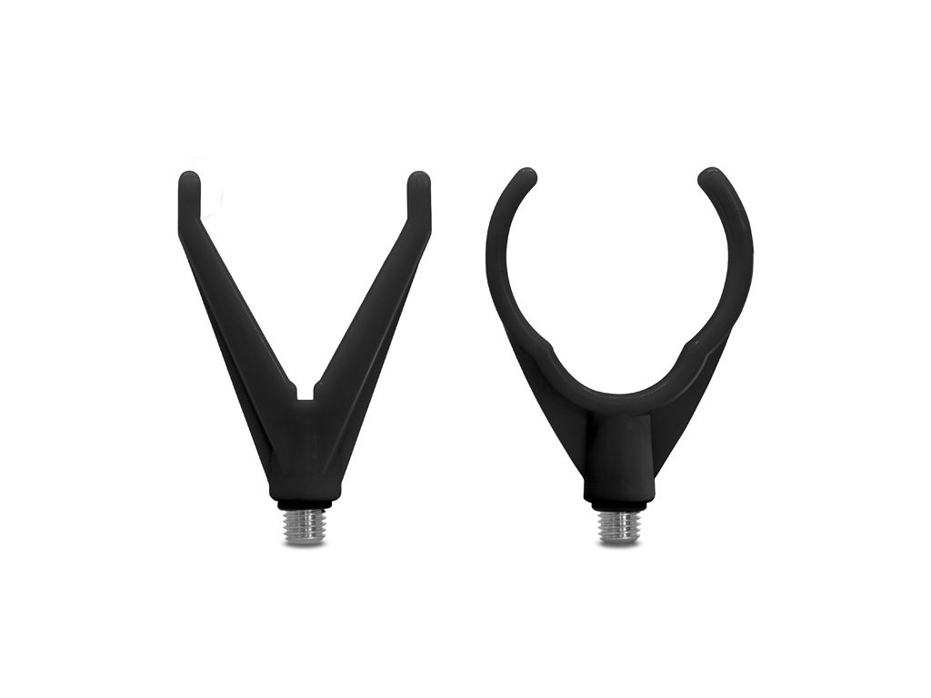 Sada držiakov prúta, pozostávajúca z predného a zadného držiaka s univerzálnym závitom, pre prichytenie k akýmkoľvek rázsoškám či stojanom. Držiaky sú vhodné najmä pre feedristov, ale aj rybárov, ktorí radi lovia na položenú či plávanú.