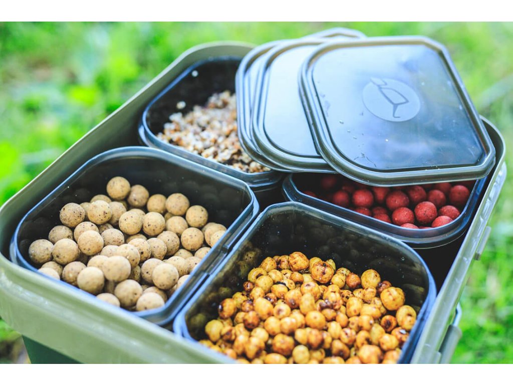 Vďaka tomu je vhodný pre situácie, kedy chcete kŕmiť návnadami rôznych veľkostí, a poskytuje vám ľahký prístup ku všetkým návnadám v jednom vedre, avšak stále vám umožňuje mať všetko rozdelené podľa vašej potreby - na rozdiel od toho, kedy ich zmiešate dohromady. Je tiež skvelý pri použití spodových zmesí, ktoré obsahujú drobné častice a pelety, a kde miešanie vopred môže spôsobiť, že niektoré druhy kŕmenia, ako je konope, vyschnú a plávajú, alebo sa pelety rozpadnú viac, než by ste chceli. Každý box je vzduchotesný a vodotesný, čo znamená, že v ňom je možné bezpečne uchovávať tekutiny bez obáv z rozliatia, a pokiaľ vám na konci vašej výpravy zostane kŕmenie, ako napríklad partikel, môžete nádobu jednoducho vložiť do mrazničky tak, aby bola pripravená na použitie na vašej ďalšej výprave.