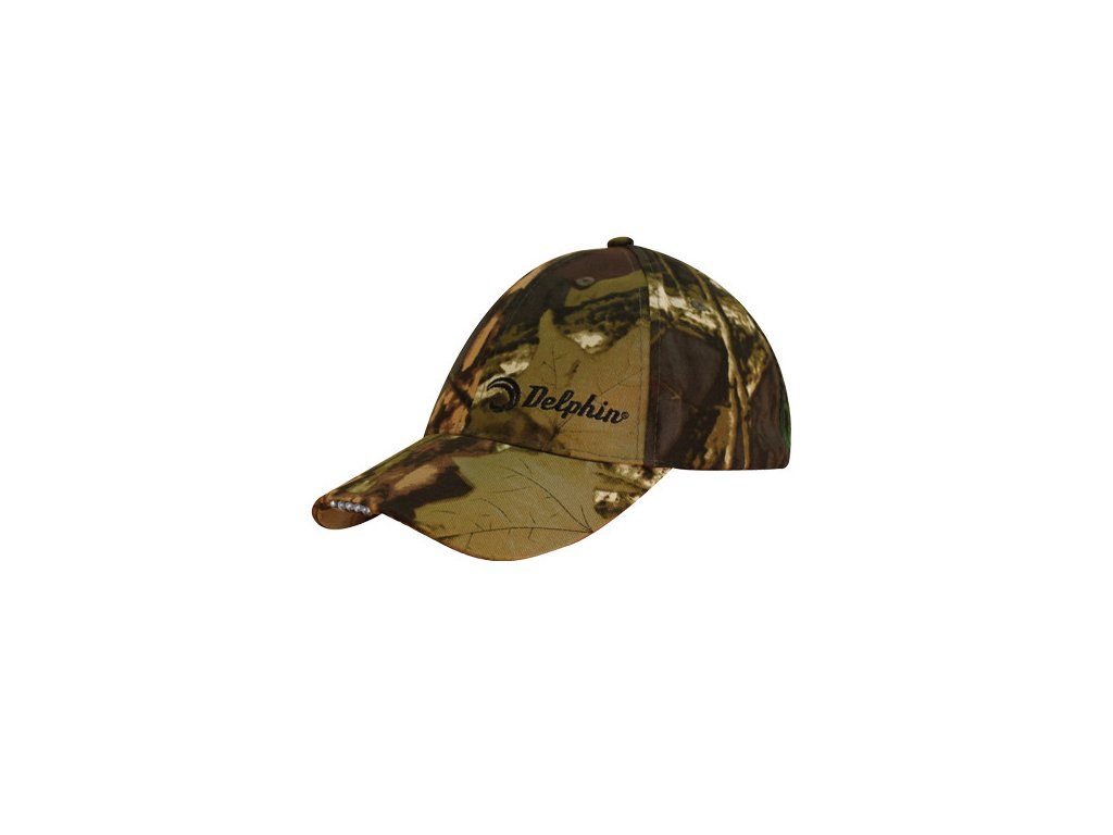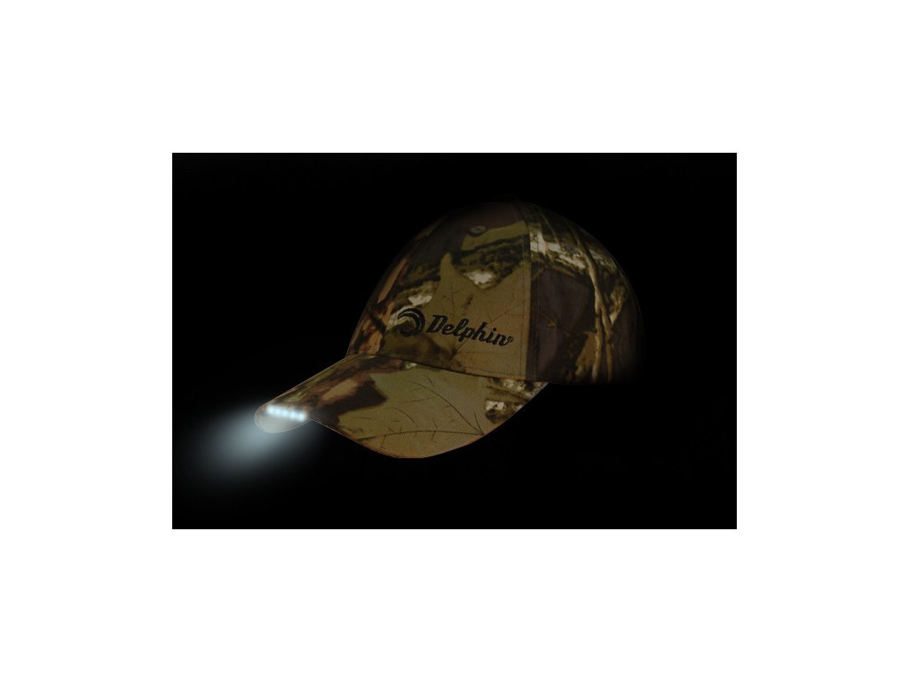 Letná čiapka- šiltovka s LED diódami od značky Delphin vo vyhotovení kamufláž.