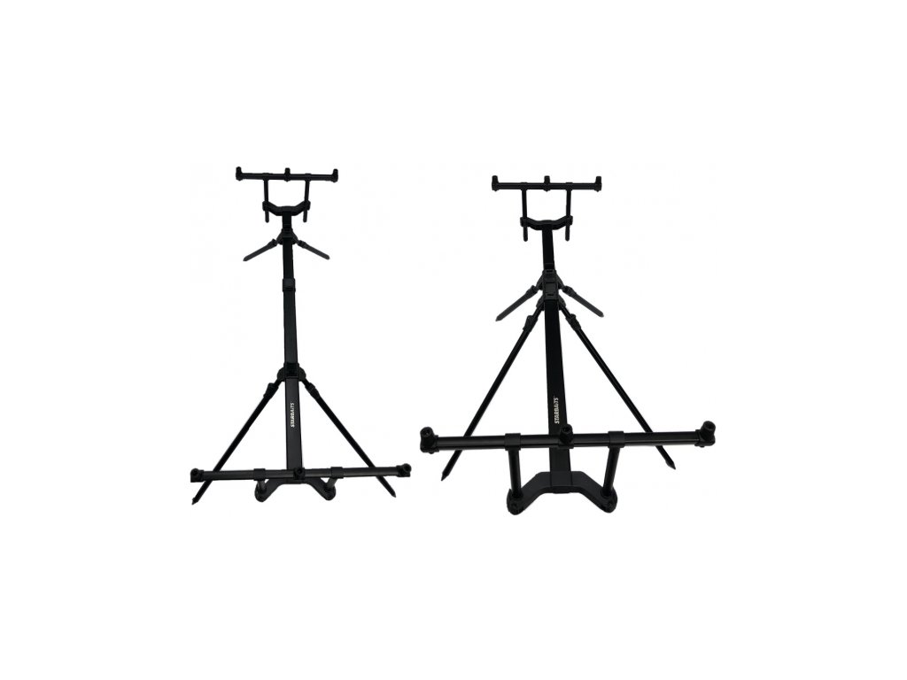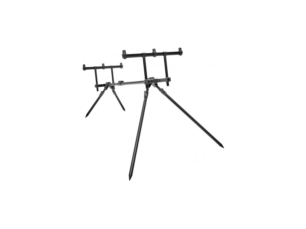 Stabilný a pevný stojan pre vaše prúty. Jednoduché rozloženie a zloženie. 4 výškovo nastaviteľné teleskopické nohy s možnosťou posunu po hlavnej stredovej konštrukcii pre ideálne nastavenie sklonu prútov a prispôsobenie sa nerovnému terénu.