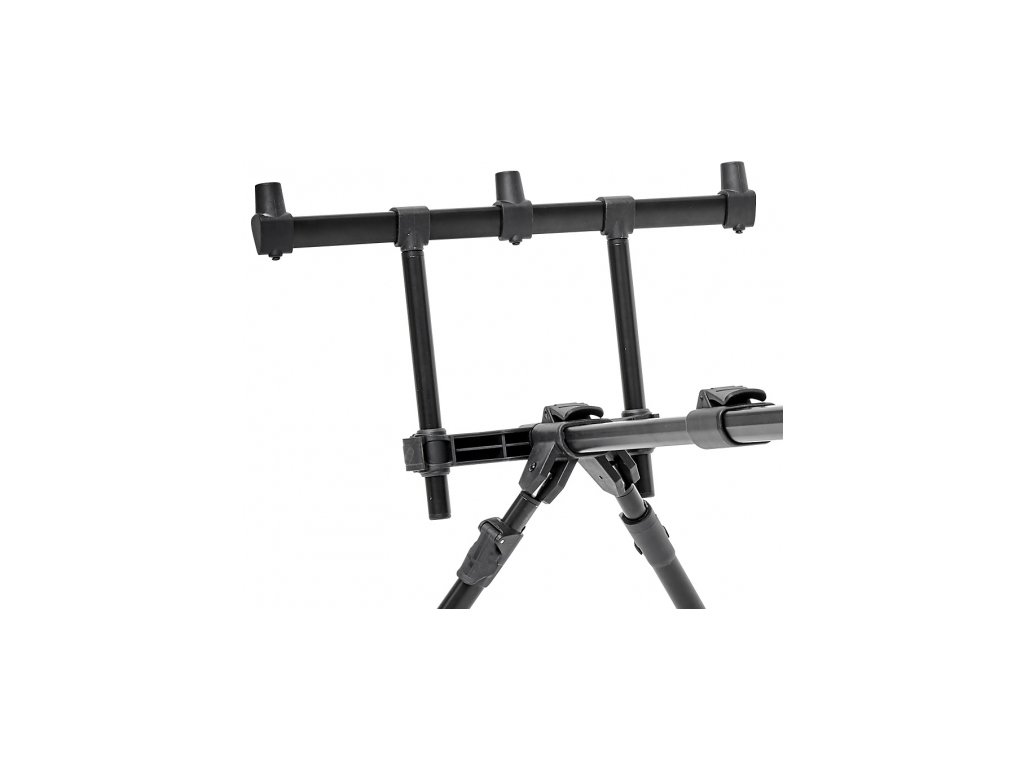 Stabilný a pevný stojan pre vaše prúty. Jednoduché rozloženie a zloženie. 4 výškovo nastaviteľné teleskopické nohy s možnosťou posunu po hlavnej stredovej konštrukcii pre ideálne nastavenie sklonu prútov a prispôsobenie sa nerovnému terénu. Výškovo nastaviteľné hrazdy s ľahkým systémom skladania, nastaviteľná dĺžka stojana. Stojan je vyrobený z odľahčenej, ale napriek tomu veľmi pevné zliatiny. Dodávané s transportným obalom. Rozmer v zbalenom stave 95x33 cm, dĺžka stojana 93-110 cm, výška 65/85 cm, výsuv hrázd 45/60 cm, dĺžka hrázd 56 a 69 cm, dĺžka nôh 30/50 cm a 60/108 cm, váha 1800 g.