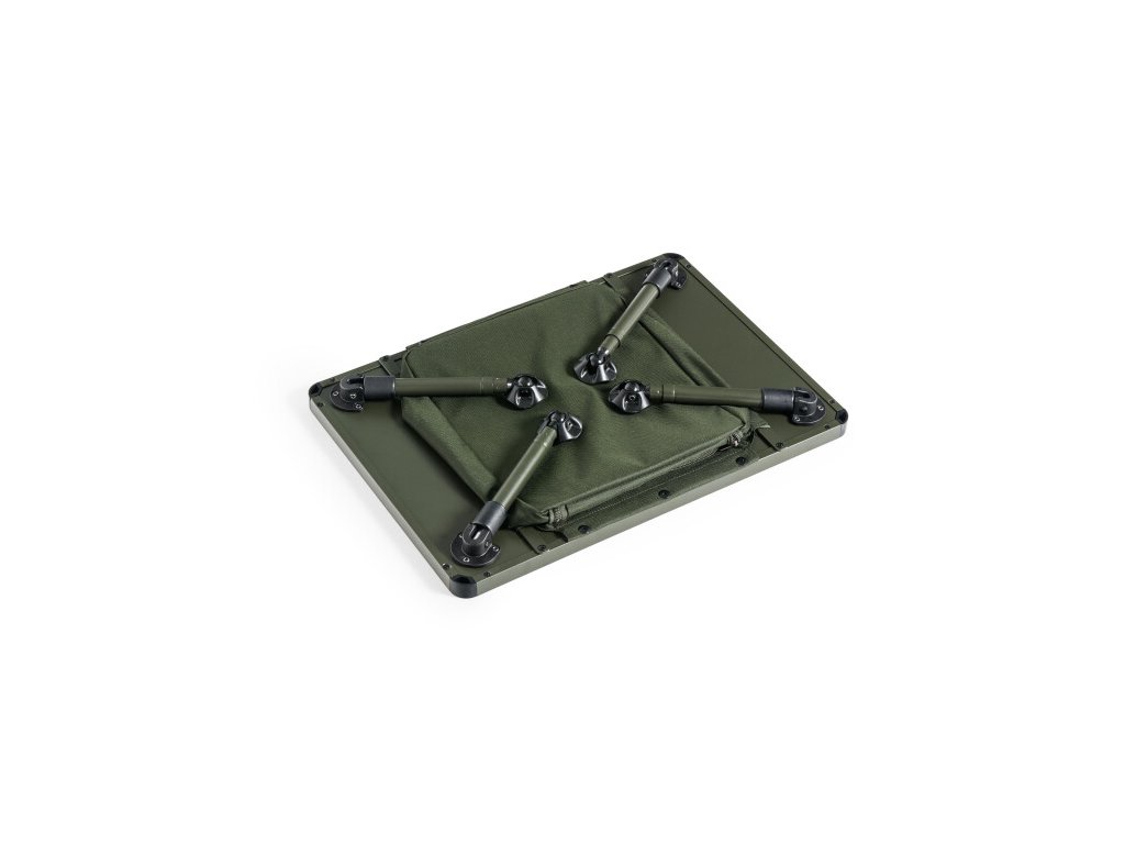 Novo navrhnutý bivakový stolík väčšej veľkosti s úložným priestorom pod doskou. Úložný priestor je uzatvárateľný na zips a jeho dno je spevnené ľahkou ale dostatočne tuhou doskou. Celokovová konštrukcia hlavnej dosky je zárukou tuhosti a dlhej životnosti. Teleskopické nohy sú vybavené luxusnými výkyvnými pätkami a systémom rýchlej aretácie výsuvu. Dovoľujú zároveň postavenie stolíka v nadštandardnej výške. Veľmi ľahké je aj vyklápanie a sklápanie nôh. Stolík je dodávaný v praktickom prepravnom púzdre s ušami na prenášanie.