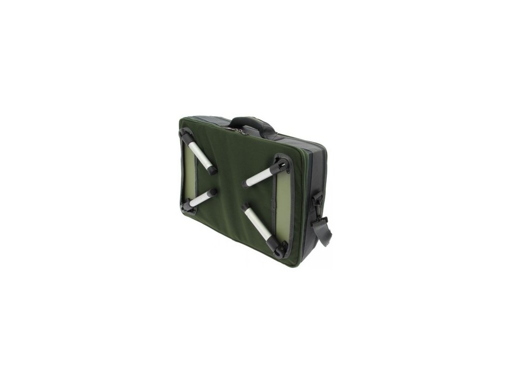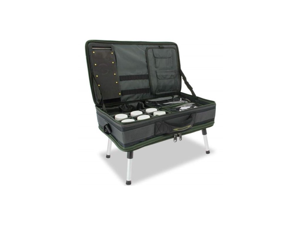 Veľmi vydarený, kvalitne spracovaný kufrík s integrovaným stolíkom. Stolík je možné z kufríka vybrať, tým získate klasický stolík do bivaku a kufrík na všetko nevyhnutné. Veľmi robustné spracovanie a kvalitné zipsy. Už nikdy nebudete hľadať potrebné vybavenie všade po bivaku. Všetko je prehľadné a na jednom mieste. Má výdatné polstrovanie ako vo vnútri kufra, tak na pútku a popruhu cez rameno. Veľa možností ako vnútro kufríka individuálne upraviť a nastaviť. Ideálny na dlhšiu výpravy pre kaprára do bivaku.