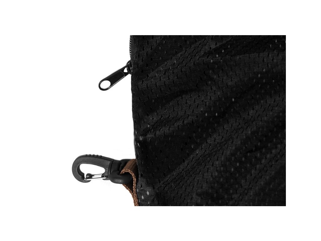 Tento carpsack je určený pre šetrné prechovávanie vášho úlovku. Vďaka uzatváraniu zipsom a úchytom sa výborne hodí aj na bezpečné váženie úlovku. Je vyrobený z extra jemnej textílie s mikroočkami, vďaka ktorým sa daný úlovok nepoškodí ani tzv. nezatrhne. Švy, ktorými je táto textília spojená sú veľmi odolné a pevné. Samotné úchyty sú prišité pozdĺž celého vaku, čo zaručuje vysokú trvácnosť produktu. Vrchná časť je uzatvárateľná pomocou všitého zipsu. Krajné rohy sú doplnené klipmi, ktoré v spojení s priloženou šnúrou a dvomi kovovými okami umožňujú ukotvenie celého vaku o pevný bod. Celá táto vážiaca taška je dodávaná v prenosnom puzdre.