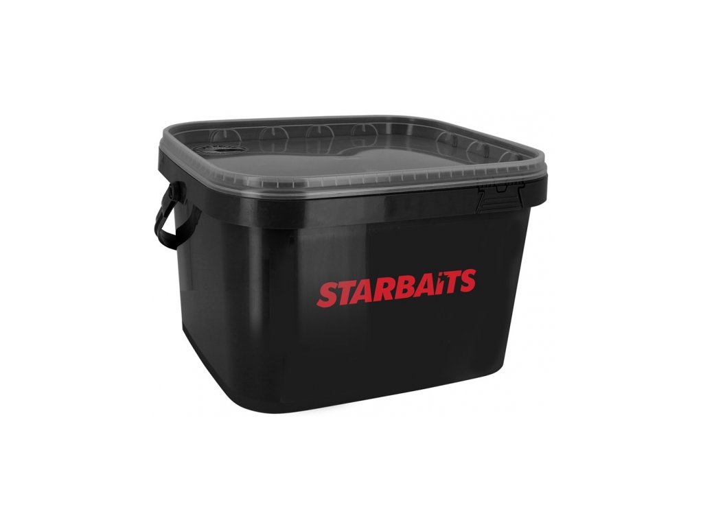 Hranaté vedierko s vekom z pevného plastu s madlom a logom Starbaits. Objem 13 l.