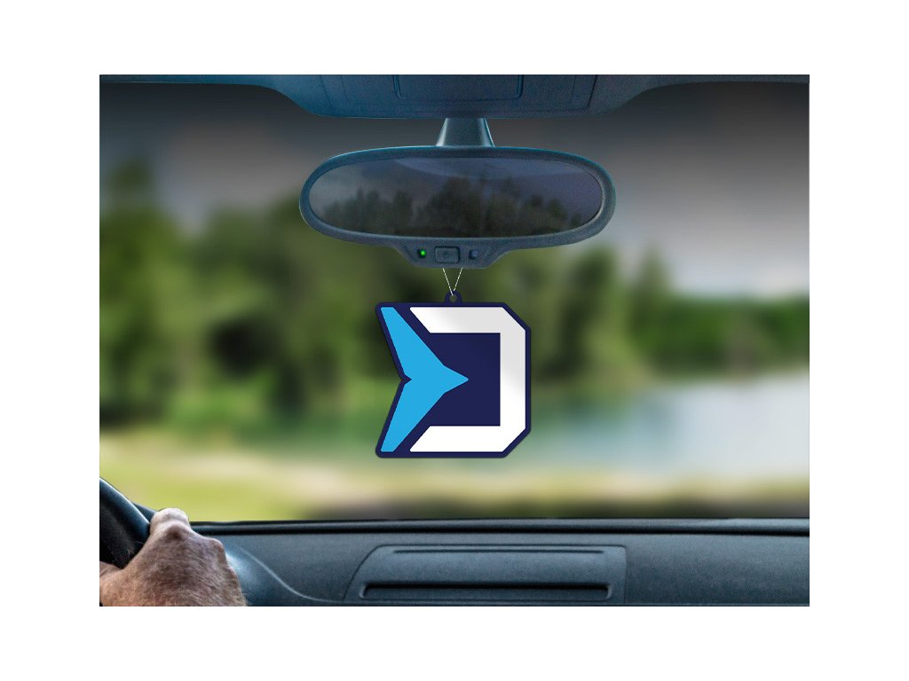 Osviežovač vzduch s motívom loga značky Delphin, v typickom modro-bielom prevedení.